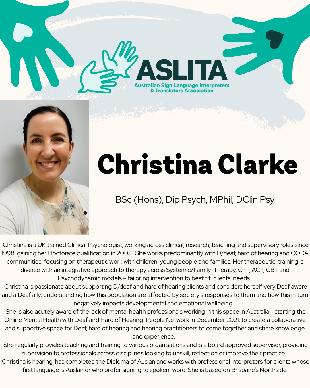 $80.00 (member price: $40.00)To acknowledge the importance of mental health, ASLITA will be providing two PDs throughout the Mental Health Awareness week (4th – 11th October) that are specifically tailored towards the aspects of interpreters and translators’ perspectives, experiences and responsibilities that can differ. Both of these workshops will establish a safe and confidential space for participants so that our presenters can pass on their knowledge to help interpreters look after themselves.‘Safe Space – What does this look like for Deaf Interpreters?’ is open to Deaf Interpreters and Deaf RPTs only. For this PD, we are fortunate to invite two wonderfully experienced Deaf professionals who have worked within the mental health sector for many years. Irene Holub is based in Australia and has a wealth of knowledge as a Deaf Counsellor and founder of AuslanSoul. We also have Herbert Klein who will be joining us from the U.K. in order to provide his expertise and advice on navigating through the mental health space within the NHS (National Health Service) in England. Both presenters will be discussing the following topics below and participants will have the opportunity to ask questions.The informal discussion between Irene, Herbert and the ASLITA facilitator will be delving deeper into the topics below:-