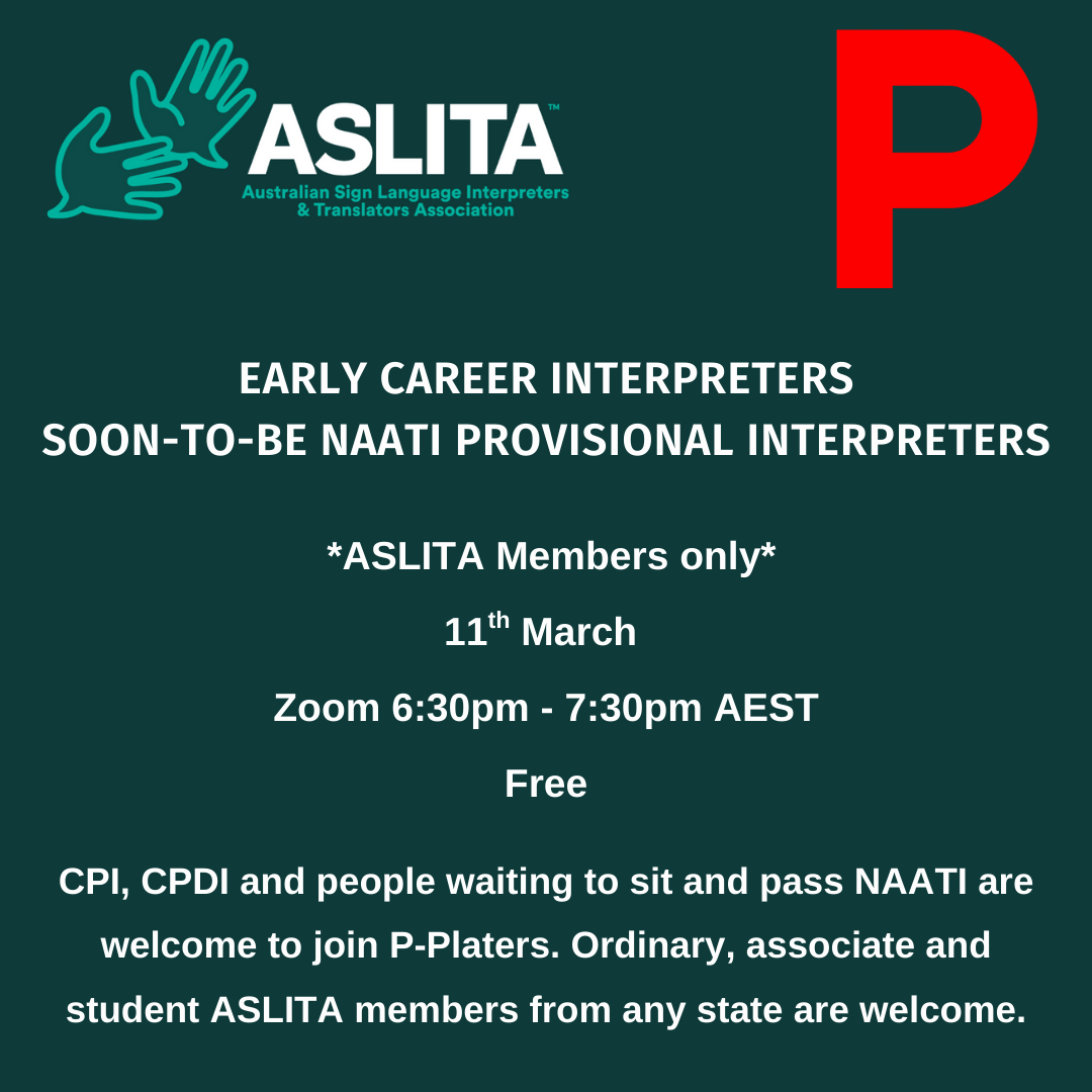 Whether you’ve just completed your Diploma of Interpreting or you’re a Certified Provisional Interpreter (CPI/CPDI), this supportive community is designed for ASLITA members (all states welcome).